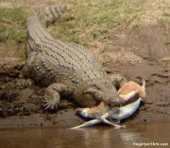El cocodrilo pertenece al grupo de los reptiles, y se caracteriza por su gran tamaño corporal. Además posee una cabeza también grande que es chata y en forma triangular, de la que sobresalen sus amenazantes ojos. Posee dientes muy granes también y filosos que sirven para apretar y destrozar a su presa.